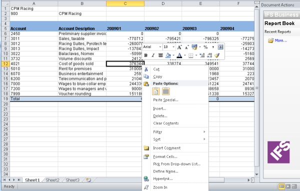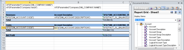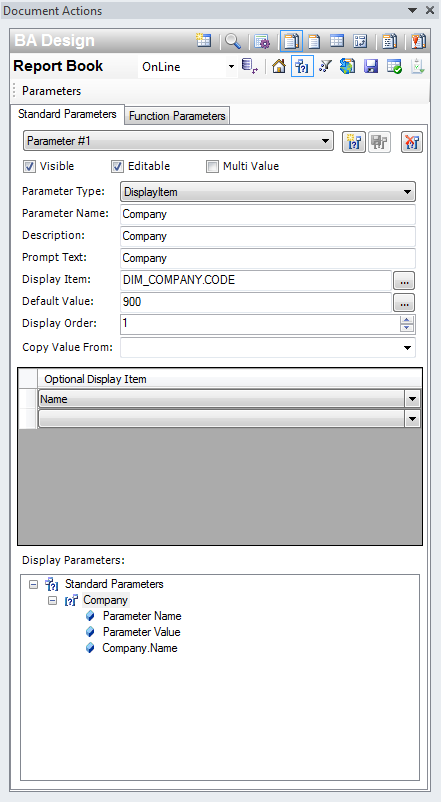 IFS Business Analytics/Go to Design/Report Book/Parameters