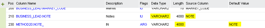 NOTE field, because CLOB cannot be handled. Change the Length to 4000. Enter