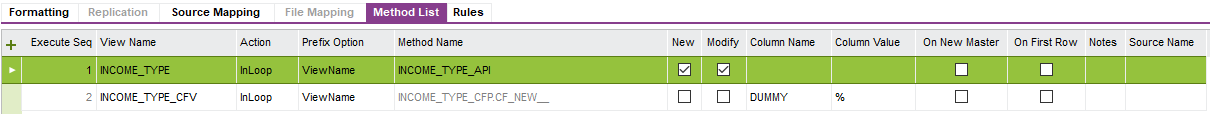 Create the job header as usual and set the procedure name to EXCEL_MIGRATION. Then add two methods to the Method List tab. One for the Base LU View (e.g. Income_Type), and another for the Custom Fields View (_CFV).
