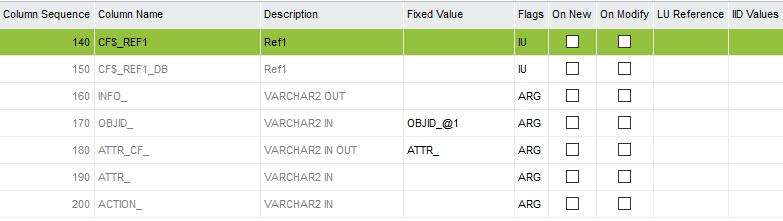 The Method List Attributes for the _CFV should only include the Custom Fields attributes(CF$_), INFO_, OBJID_, ATTR_CF_, ATTR_, ACTION_. Remove all the other attributes. The configuration should be as the following.