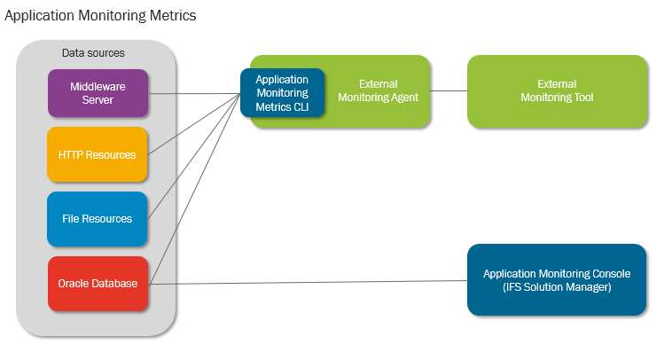 The Application Monitoring Metrics is a set of defined metrics describing the status of different parts of IFS Applications. These metrics are available via a command line interface (CLI) and can be used by external monitoring tools.