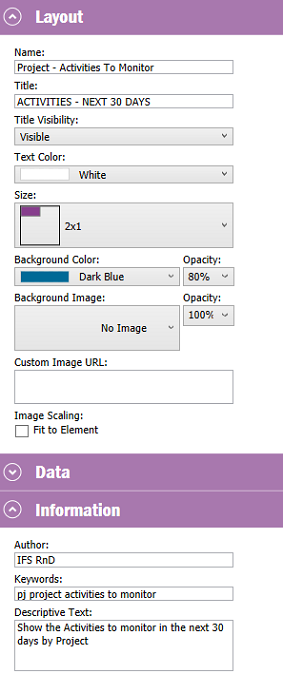 | Background Image | The elements background image and it's opacity |