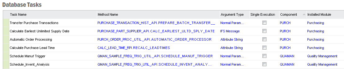 Registration of tasks and chains are done using Create New Database Task or Create New Database Task Chain located in the Configuration/Database Tasks folder in IFS Solution Manager.