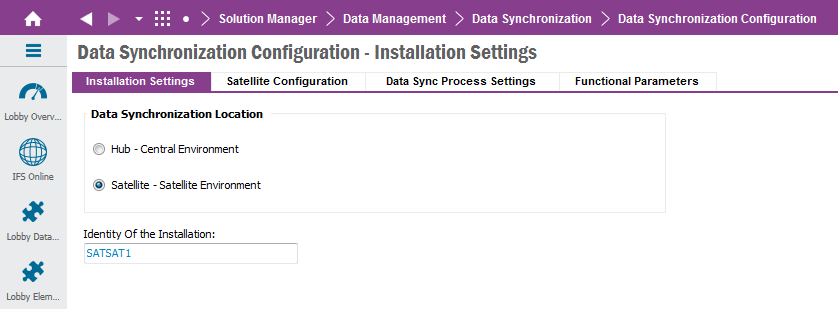 The field "Identity of the Installation" in window Installation Settings will be automatically generated as SAT<SATELLITE_NAME>
